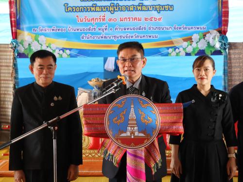ว่าที่พันตรี อดิศักดิ์ น้อยสุวรรณ ผู้ว่าราชการจังหวัดนครพนม มอบหมายให้ ว่าที่ร้อยตรี รวยรุ่ง ใครบุตร รองผู้ว่าราชการจังหวัดนครพนม เป็นประธานในพิธีเปิดการจัดกิจกรรมเนื่องในวาระครบรอบ 57 ปี โครงการพัฒนาผู้นำอาสาพัฒนาชุมชน ภายใต้แนวคิด "รวมพลัง อช.นครพนม สานต่อพระราชปณิธาน สมเด็จพระพันปีหลวง" โดยมี นายหาญ ศรีหาวงษ์ ผู้อำนวยการกลุ่มงานส่งเสริมการพัฒนาชุมชน รักษาราชการแทน พัฒนาการจังหวัดนครพนม กล่าวรายงานฯ มีวัตถุประสงค์เพื่อเป็นการส่งเสริมและเพิ่มขีดความสามารถของผู้นำอาสาพัฒนาชุมชน โดยน้อมนำหลักปรัชญาของเศรษฐกิจพอเพียง ซึ่งเป็นศาสตร์พระราชา มาประยุกต์ใช้ในการดำเนินการแก้ปัญหาและเสริมสร้างความเข้มแข็งให้แก่ชุมชน เพื่อเชิดชูเกียรติ อช. ผู้นำ อช.ดีเด่น ที่น้อมนำหลักปรัชญาของเศรษฐกิจพอเพียงมาพัฒนาตนเองให้เป็นแบบอย่างที่ดี และเพื่อเผยแพร่และประชาสัมพันธ์การจัดกิจกรรมและผลงาน อช.ผู้นำ อช. ผ่านช่องทางสื่อต่าง ๆ มีผู้เข้าร่วมกิจกรรมประกอบด้วย หัวหน้าส่วนราชการจังหวัดและอำเภอ พัฒนาการอำเภอ เจ้าหน้าที่พัฒนาชุมชน ผู้แทนคณะกรรมการพัฒนาสตรีทุกอำเภอ ภาคีการพัฒนา และผู้นำอาสาพัฒนาชุมชน จากทั้ง 12 อำเภอ รวมทั้งสิ้น 220 คน เข้าร่วมกิจกรรมฯ