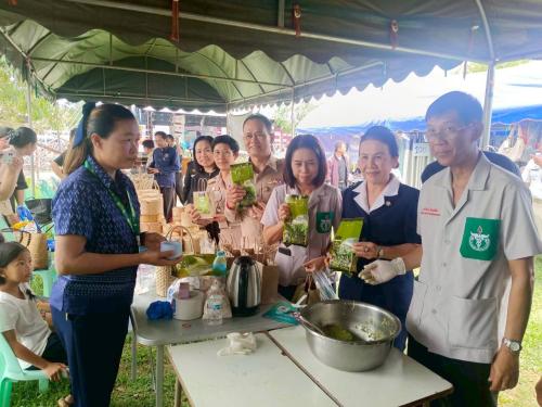 4) จัดแสดงและจำหน่ายสินค้าและผลผลิตจากกลุ่มผู้ประกอบการ OTOP และจำหน่ายผลผลิตจากเครือข่าย โคก หนอง นา