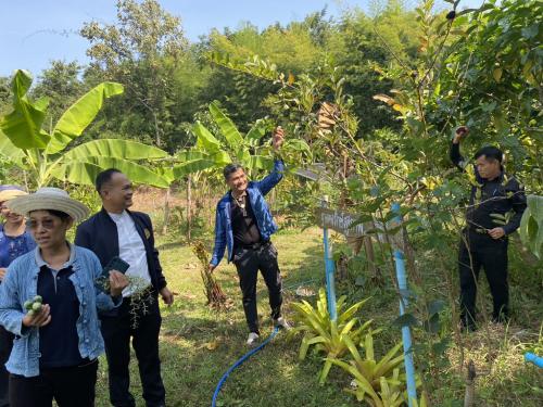 📍ณ ศูนย์เรียนรู้ การพัฒนาคุณภาพชีวิตตามหลักทฤษฎีใหม่ ประยุกต์สู่ “โคก หนอง นา” แปลงนางพิมลพิมพ์ การรัตน์ บ้านขามเตี้ยน้อย หมู่ที่ 5 ตำบลนาขมิ้น อำเภอโพนสวรรค์ จังหวัดนครพนม
