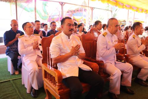 นายเชิดพันธ์ ผลวิเชียร นายอำเภอโพนสวรรค์ นำหัวหน้าส่วนราชการ องค์กรปกครองส่วนท้องถิ่น และประชาชนในพื้นที่ เข้าร่วมงานฯ ณ วัดธาตุจำปา บ้านเสาเล้าใหญ่ ตำบลโพนสวรรค์ อำเภอโพนสวรรค์ จังหวัดนครพนม โดยนายเชิดพันธ์ ผลวิเชียร นายอำเภอโพนสวรรค์ ประธานจัดงาน กล่าวรายงานสรุปการจัดงานต่อประธานในพิธี